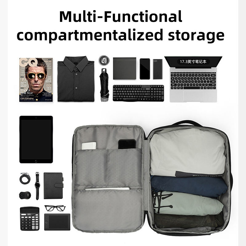 กระเป๋าเป้สะพายหลังสำหรับนักธุรกิจแบบขยายได้ ช่องใส่รองเท้าแยกต่างหาก ความจุ 20-35 ลิตร พอร์ต USB ดีไซน์ทันสมัย วัสดุไนลอน