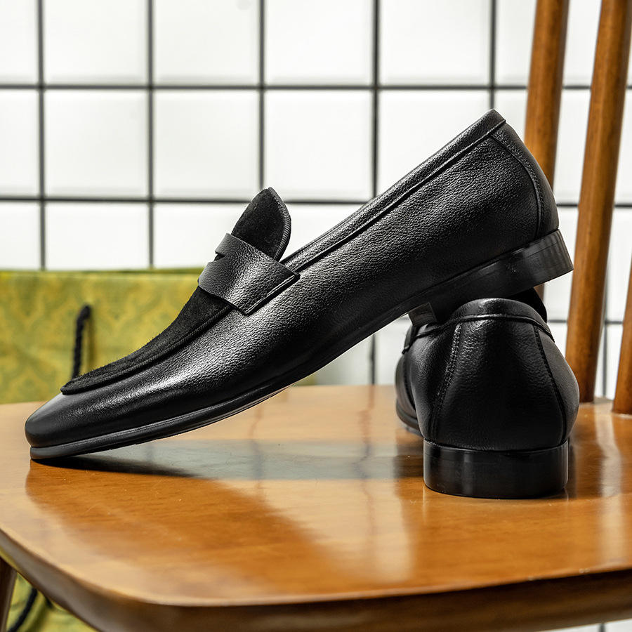 รองเท้าหนังผู้ชายทรงสี่เหลี่ยมหัวแหลม กันน้ำ หนังแกะ สไตล์ลำลอง แฟชั่นฤดูใบไม้ร่วง แต่งพู่ น้ำหนักเบา ระบายอากาศได้ดี