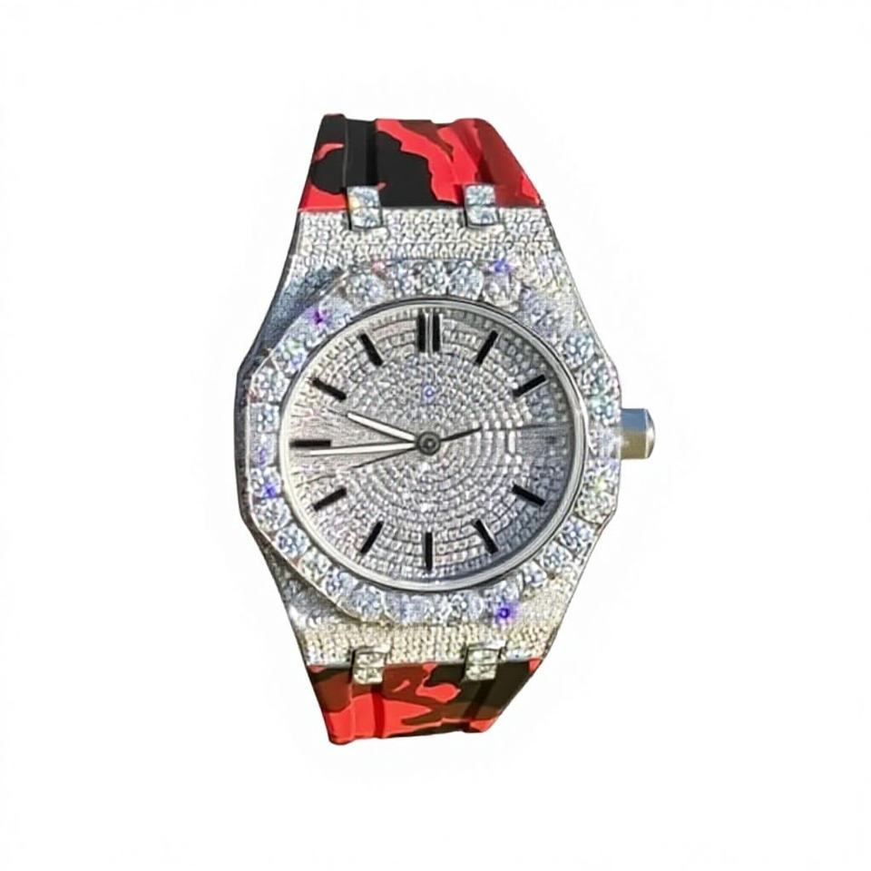 นาฬิกาข้อมือผู้ชายดีไซน์หรูหราสำหรับนักธุรกิจ ตัวเรือนทรงเหลี่ยม ประดับโมอิสซาไนต์ สายสแตนเลส กันน้ำ 10 บาร์ หน้าปัดเรืองแสง ปรับแต่งได้