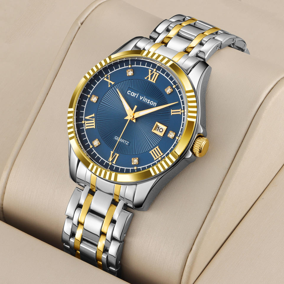 นาฬิกาควอตซ์สำหรับนักธุรกิจชายพร้อมสายสแตนเลสกันน้ำหน้าปัดขนาดใหญ่นาฬิกาข้อมือแสดงวันที่