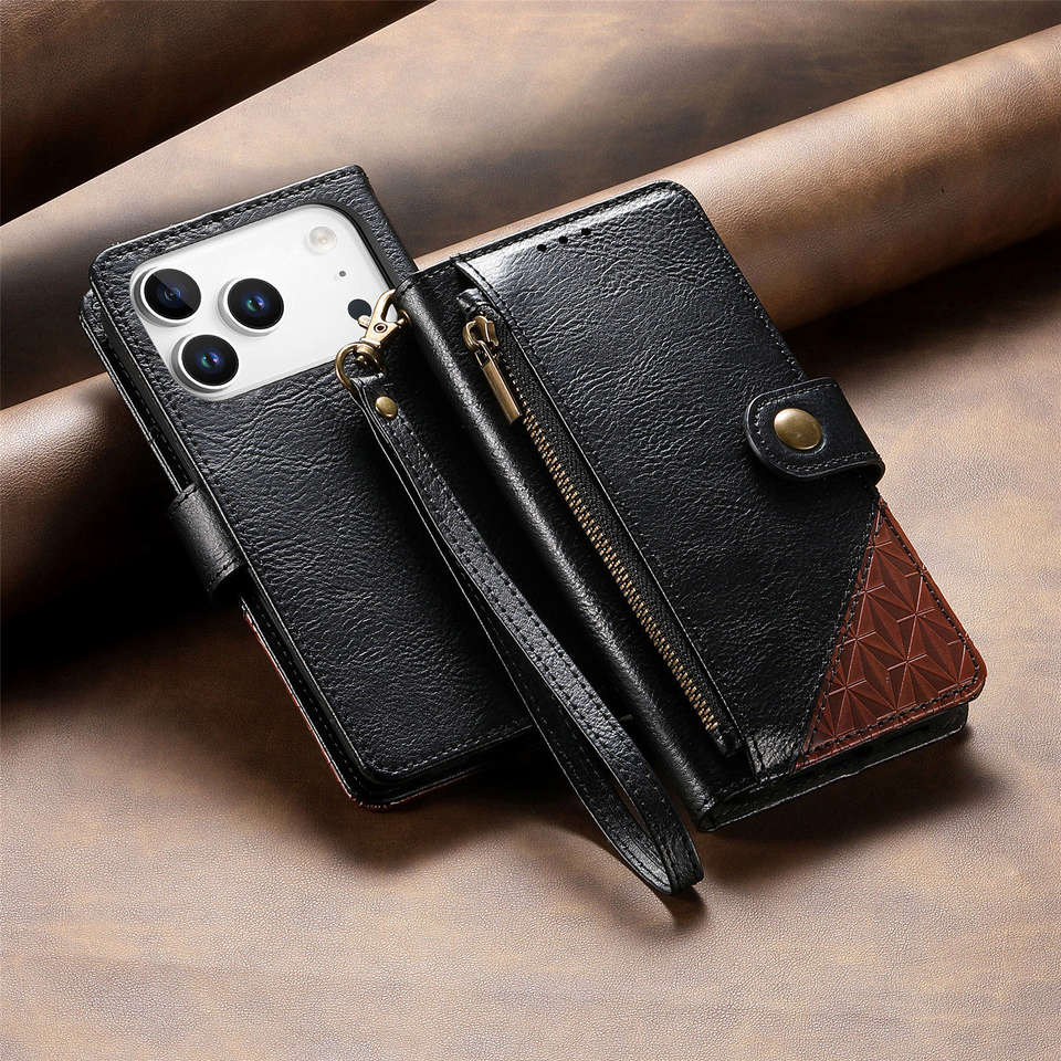 เคสโทรศัพท์มือถือแบบกระเป๋าสตางค์หนัง PU ลายเลเซอร์ พร้อมซิปแม่เหล็ก สำหรับ 17 Pro Max 16 ดีไซน์รูปหัวใจ สายคล้องข้อมือแบบสั้น