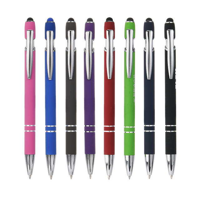 ปากกาลูกลื่นแบบมี MOQ ต่ำพิมพ์ลายลูกบอลพลาสติกสำหรับโรงเรียนงานโฆษณาทางธุรกิจสีสันสดใส
