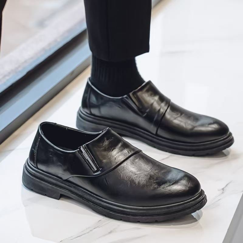 รองเท้าลำลองสำหรับผู้ชายสไตล์ธุรกิจ, รองเท้าหนังสีดำแบบทางการสไตล์อังกฤษ, รองเท้าอเนกประสงค์ทันสมัยสไตล์เกาหลีสำหรับผู้ชาย