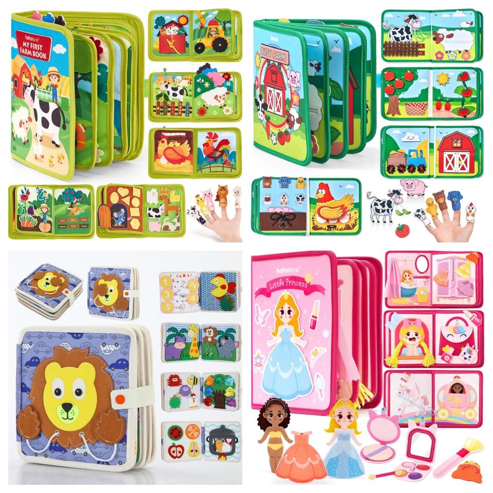 หนังสือกิจกรรมสัตว์ในฟาร์มแบบผ้าสักหลาดสำหรับเด็กเล็ก ของเล่นเสริมพัฒนาการ หนังสือเงียบๆ แบบมอนเตสซอรี่ หนังสือผ้าสักหลาดสำหรับเด็กวัยเตาะแตะ