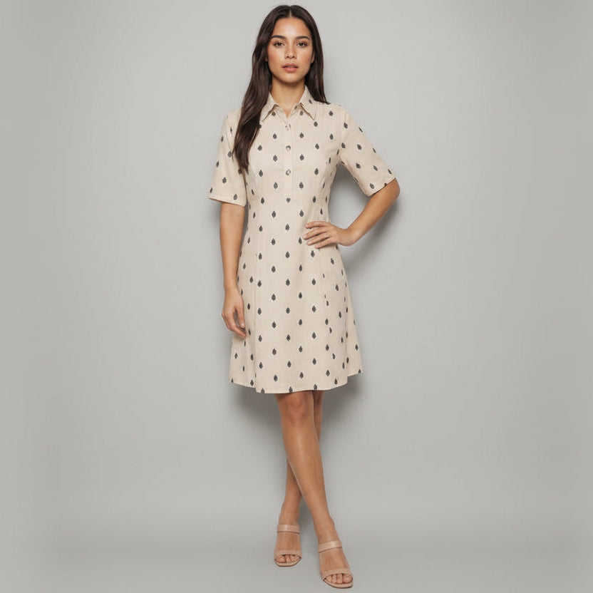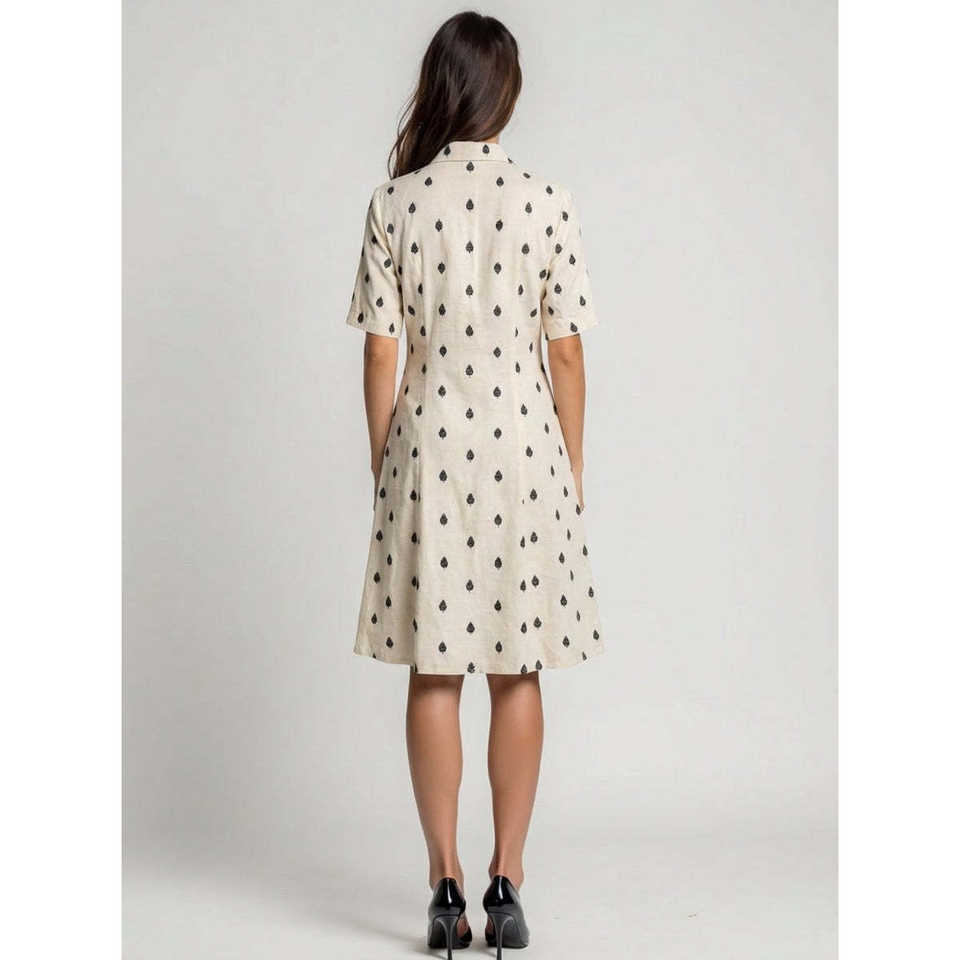เดรสผ้าฝ้ายทอลายด็อบบี้ บูติ ดอท ทรงมิดิ สไตล์ลำลองหรูหรา ตกแต่งกระดุม ผลิตจากวัสดุที่ยั่งยืน ไซส์ XS เหมาะสำหรับใส่ในชีวิตประจำวัน
