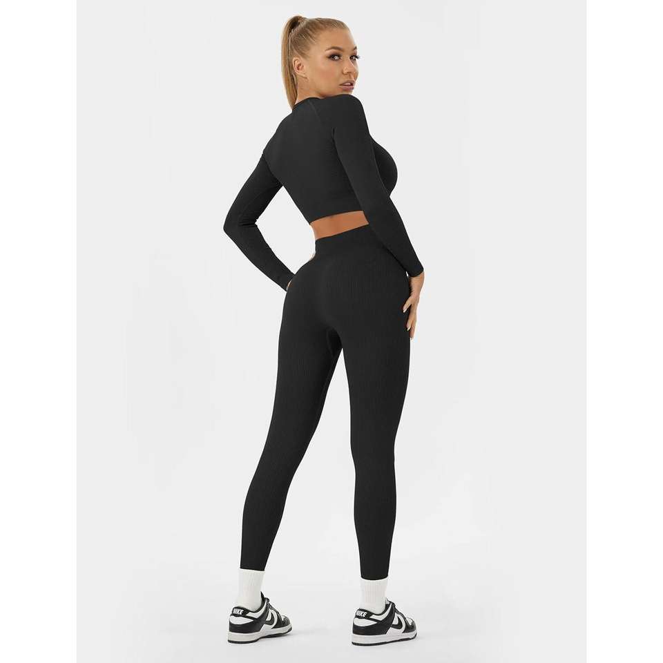 Buttegene ชุดออกกำลังกายผู้หญิง-ชุดโยคะแขนยาวพร้อมเลกกิ้งเอวสูง