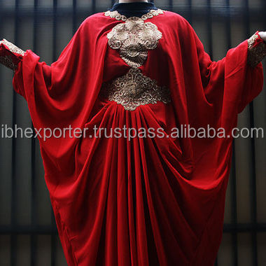 กระดุมแขนเสื้อสีแดงปักลาย irani แฟชั่นผู้หญิงสไตล์ Kaftan ยอดนิยม