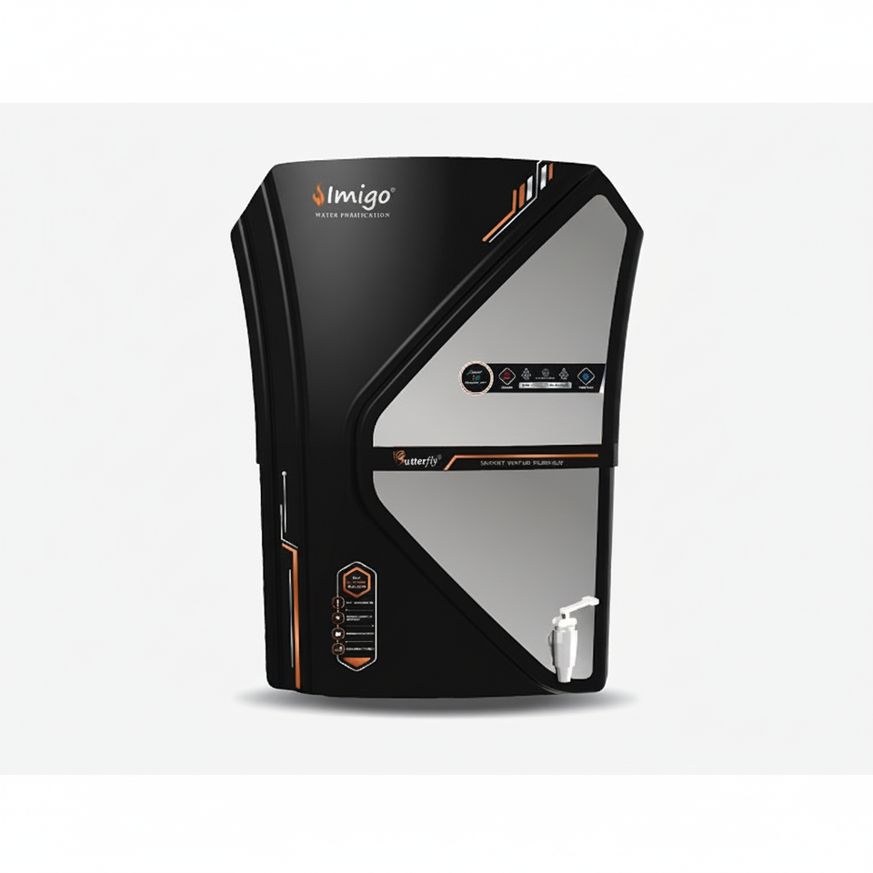 เครื่องกรองน้ำแบบ RO ทรงผีเสื้อสีดำสีเงินมีประสิทธิภาพให้น้ำดื่มสะอาดและดีต่อสุขภาพสำหรับครอบครัว