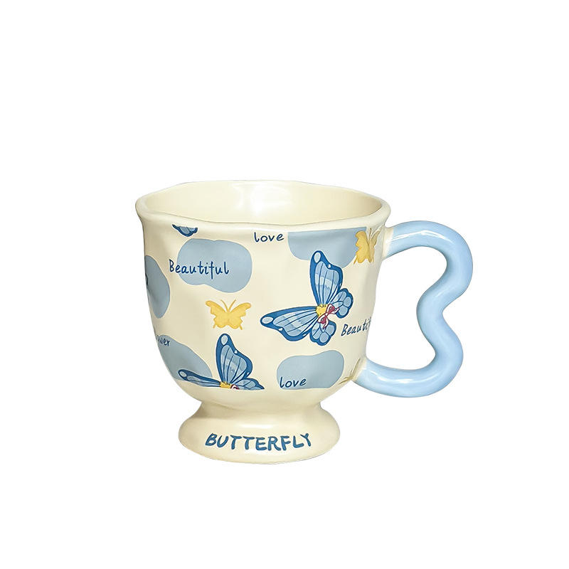 แก้วกาแฟเซรามิคลายผีเสื้อพร้อมหูจับ ดีไซน์การ์ตูน สำหรับอาหารเช้าและเป็นของขวัญ