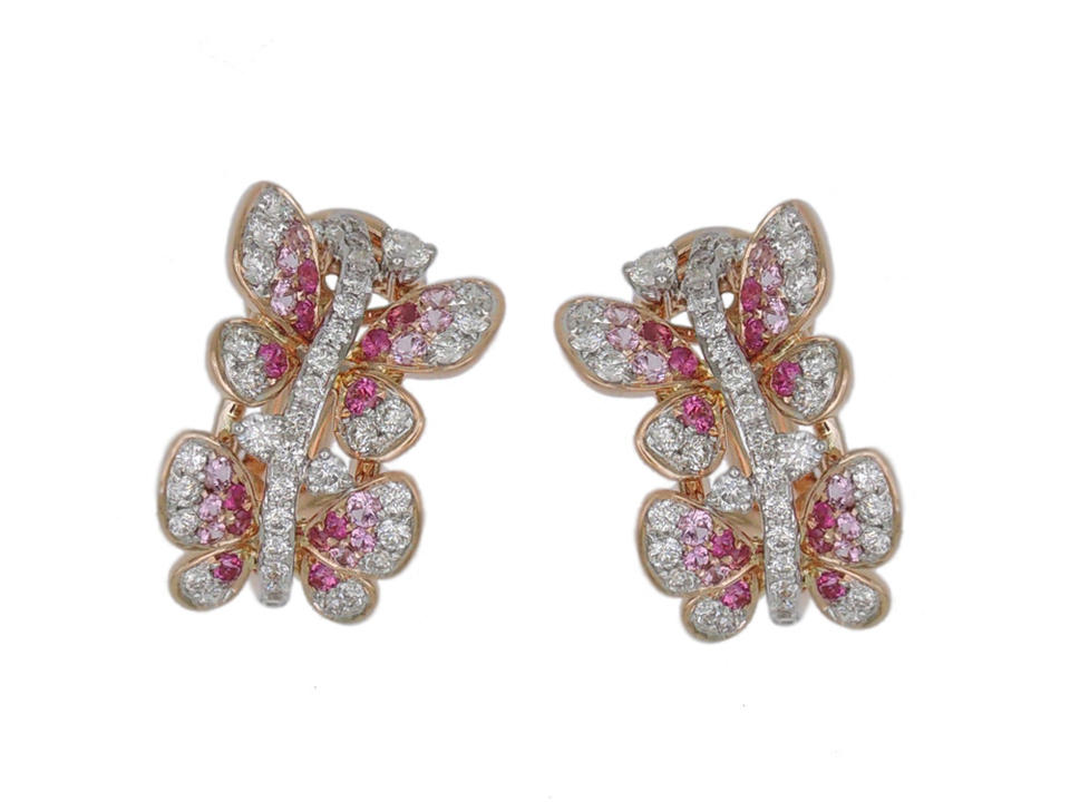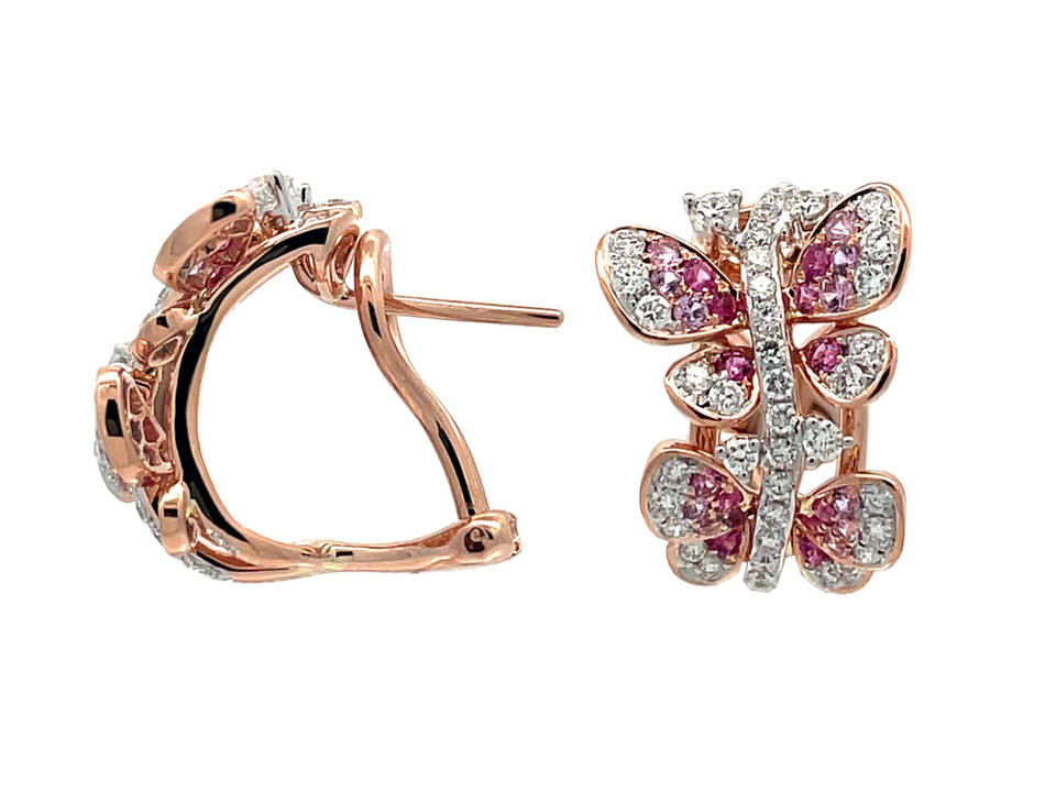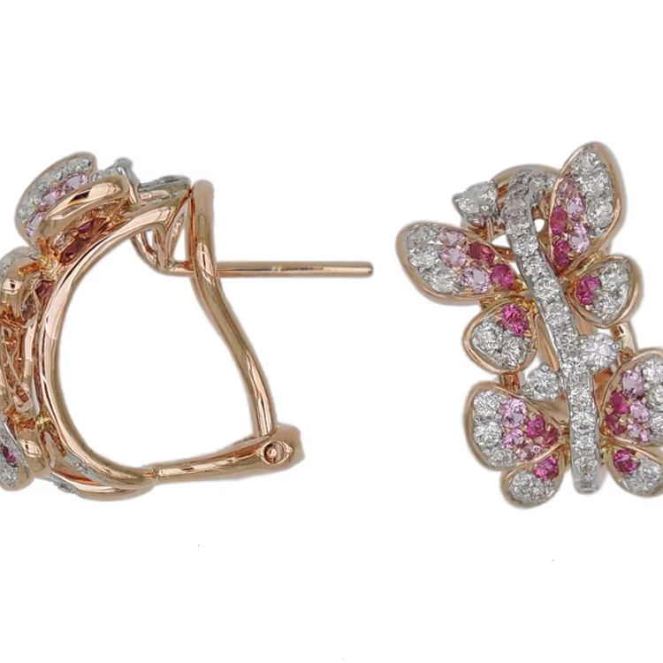 Butterfly Design Stud Earrings 18K Rose Gold White Pink Diamonds Delicate Jewelry Hypoallergenic Women Accessory