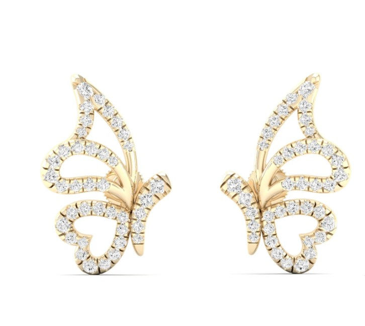 ต่างหูเพชรเม็ดเดี่ยวรูปผีเสื้อ14K/18K สำหรับงานแต่งงานงานปาร์ตี้ใช้ในชีวิตประจำวัน