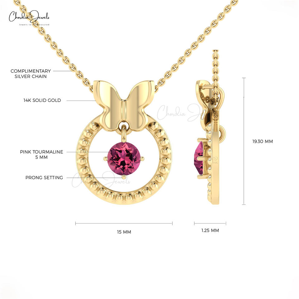 ชุดทอง14K ที่ไม่ซ้ำกัน5mm สีชมพูจี้ทัวร์มาลีนห้อยคอดีไซน์ผีเสื้อชุดง่ามเครื่องประดับทางศาสนาของขวัญซัพพลายเออร์ที่ได้รับการตรวจสอบแล้ว