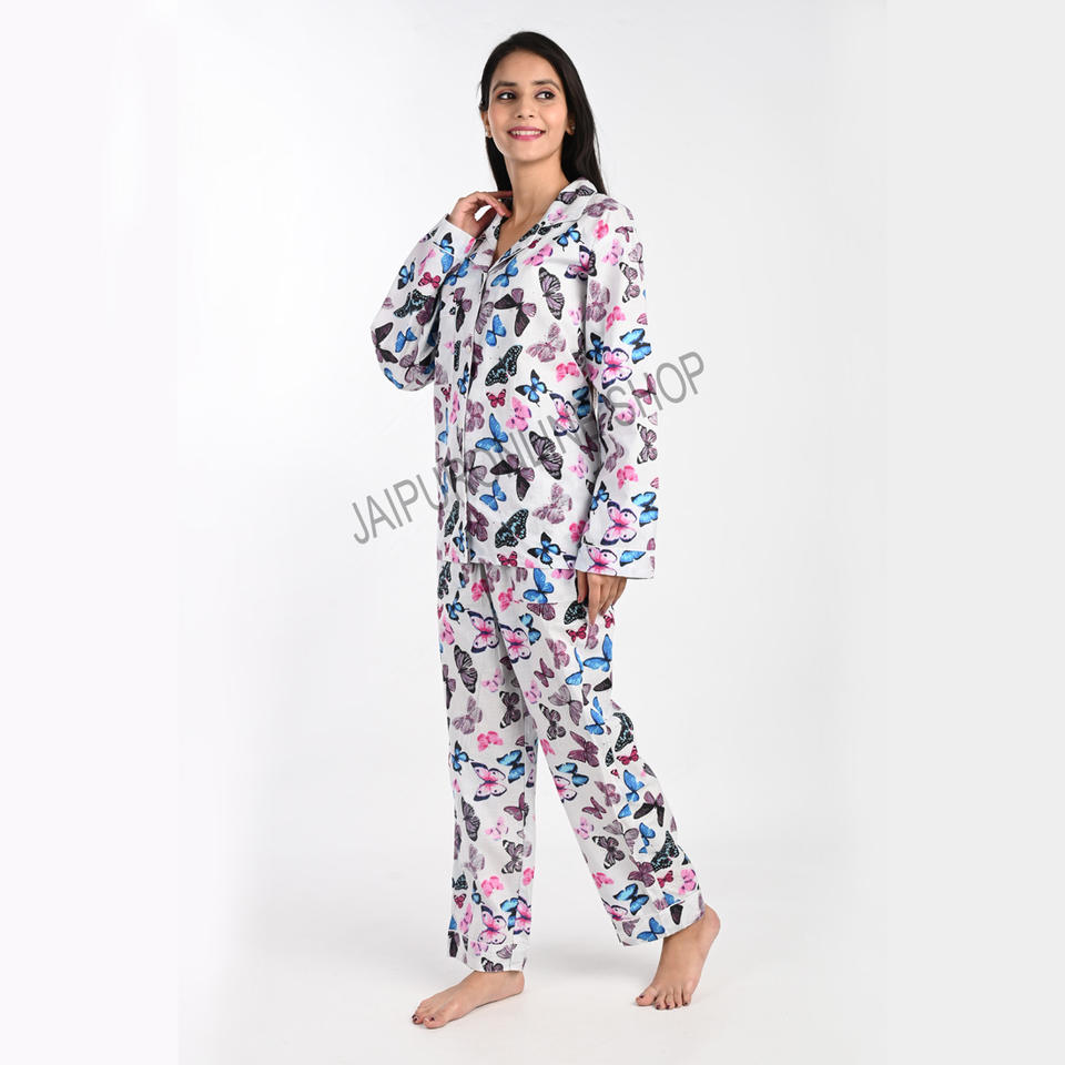 ชุดนอนผ้าฝ้ายพิมพ์ลายดอกไม้ผีเสื้อแขนยาวผ้าทอไซส์ XL สำหรับใส่นอนหรือพักผ่อนสำหรับฤดูร้อนและฤดูใบไม้ร่วง