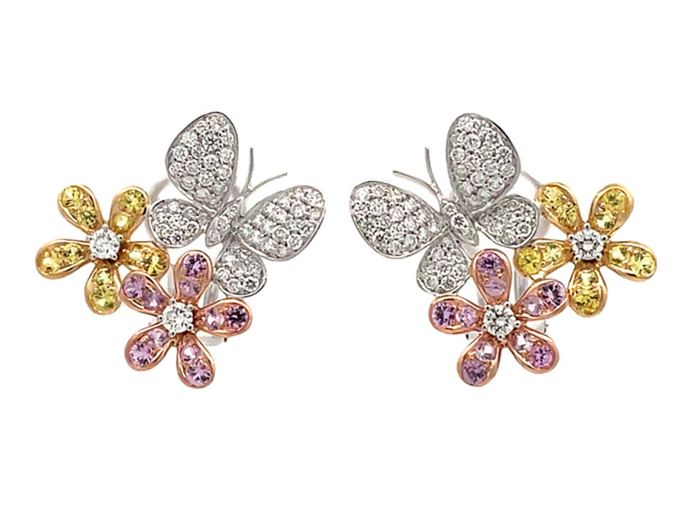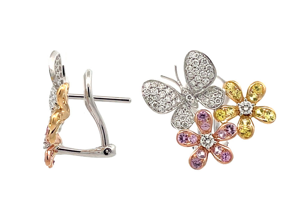 ต่างหูแบบติดหู ดีไซน์ดอกไม้ผีเสื้อ 18K ทองคำขาว โรสโกลด์ พลอยสีชมพู สีเหลือง เพชรขาว เครื่องประดับธรรมชาติ น่ารัก สำหรับผู้หญิง