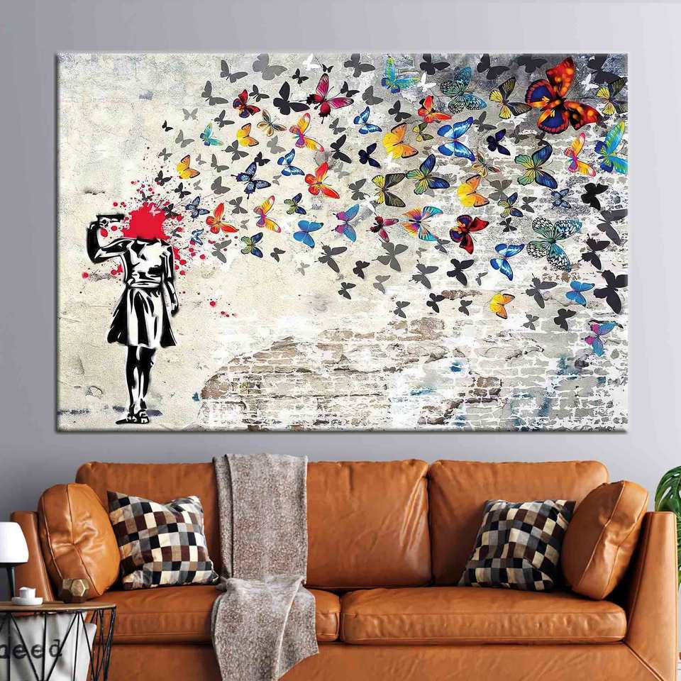 ผ้าใบพิมพ์ลายผีเสื้อหญิงสาวฆ่าตัวตาย-ศิลปะบนท้องถนนเป็นแรงบันดาลใจให้โปสเตอร์สาวแบงค์ซี่1P: แกลเลอรีห่อ