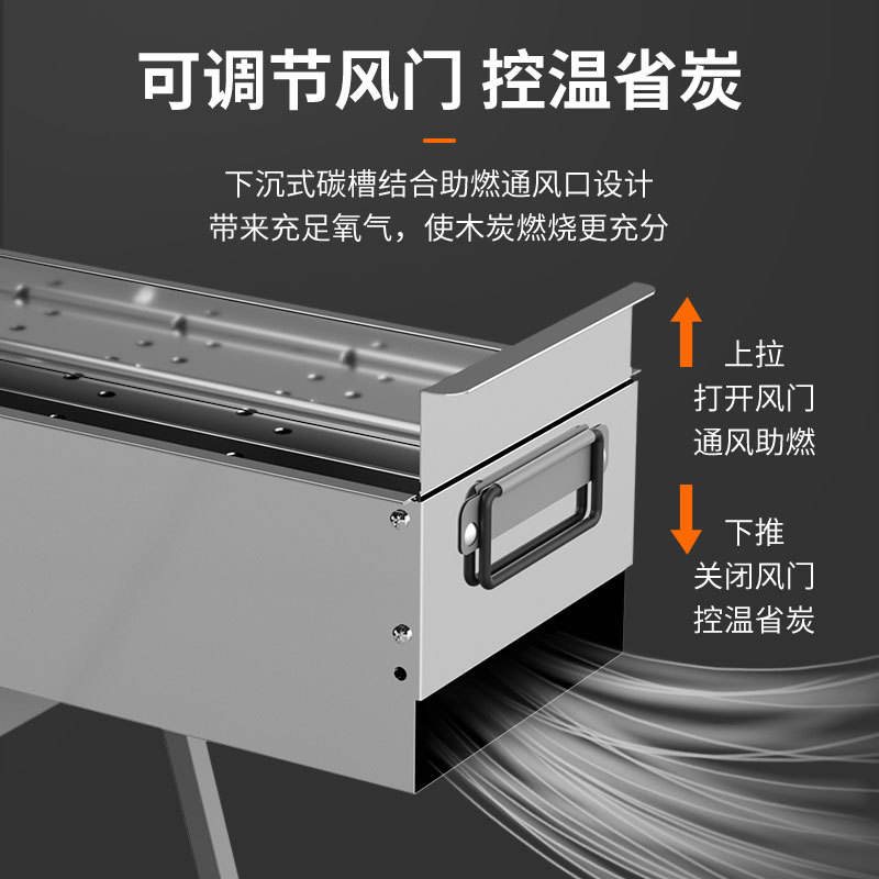 เตาปิ้งย่างบัตเตอร์ฟลายกริลล์ 430 สเตนเลสสตีลหนาพิเศษ ขนาด 100 ซม. ปรับความสูงได้ แบบแยกส่วน
