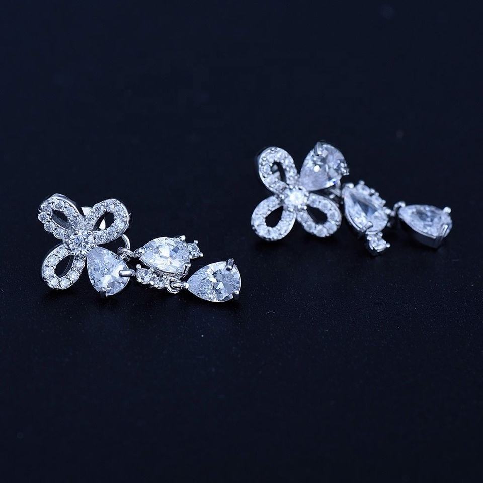 ต่างหูทรงผีเสื้อสุดฮิตสำหรับงานปาร์ตี้ ทำจากโลหะผสมไทเทเนียมและทองแดง ชุบด้วยไฟฟ้า ประดับด้วยเพชรซิคอนและคริสตัลทรงหยดน้ำ สไตล์โรแมนติกแบบเกาหลี