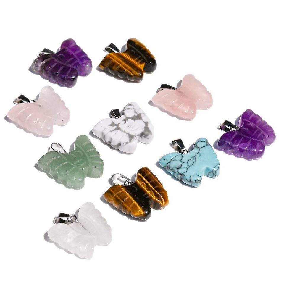 สร้อยคอผีเสื้อจี้หินธรรมชาติแกะสลักรูปสัตว์มีเสน่ห์สำหรับงานแต่งงานเครื่องประดับอัญมณีทำสารพัน