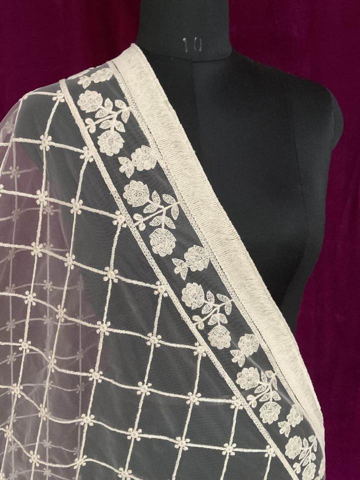 ผ้าคลุมไหล่แบบดั้งเดิมลายผีเสื้อเน็ตต์แฟนซี พร้อมงานลูกโนวี ทำจากผ้าโมดอล สำหรับชุดงานเลี้ยงแบบอินเดียและปากีสถาน