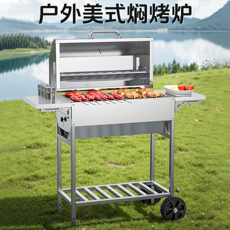 Butterfly Outdoor Stainless Steel Grill With Trolley 430 Steel Body And 304 Grill Rack For Home And Backyard BBQ