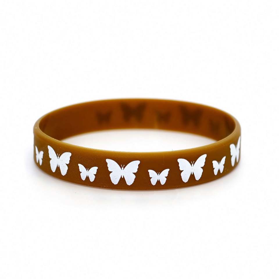 สายรัดข้อมือซิลิโคนลายการ์ตูนผีเสื้อ พิมพ์โลโก้และข้อมูล กันน้ำ สายรัดข้อมือยางสำหรับโปรโมชั่น
