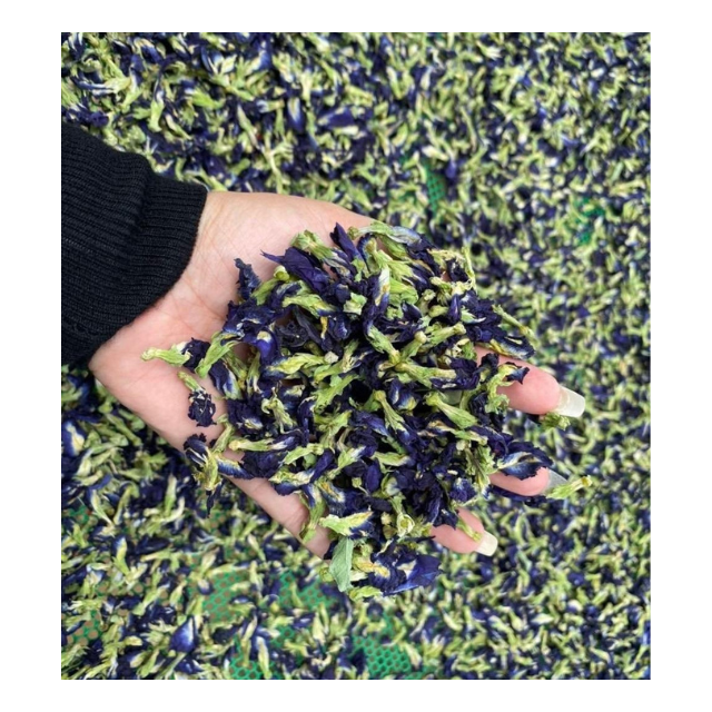 ชาสมุนไพรรูปดอกถั่วผีเสื้ออบแห้งสีฟ้าสดใสไม่มีสารเติมแต่งใช้สำหรับดื่มเบเกอรี่เครื่องสำอาง