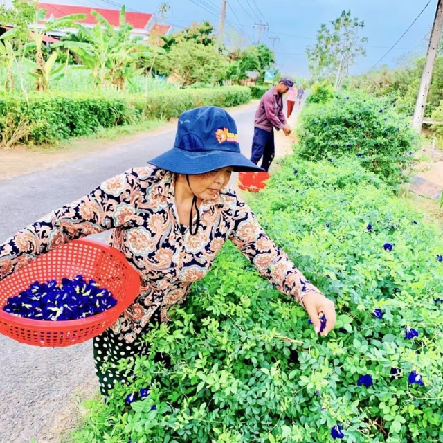 ผงดอกถั่วผีเสื้อผสมกับดอกถั่วผีเสื้อแห้ง วัตถุดิบชาดอกไม้แบบหลวม ขายส่ง
