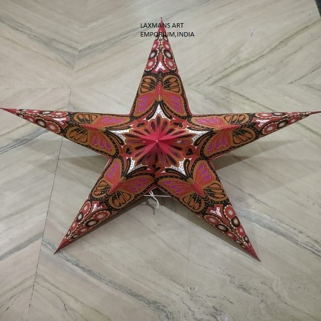 โคมไฟดาว/โคมไฟสำหรับเทศกาลคริสต์มาสพิมพ์ลายผีเสื้อด้วยกระดาษกลิตเตอร์จากอินเดีย