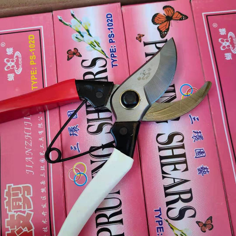 กรรไกรตัดแต่งกิ่งแบบปีกผีเสื้อ 102D ใบมีดสแตนเลส 45 มม. รูปทรงปากนก สำหรับตัดแต่งต้นไม้ผลไม้ ขนาด 20-30 มม.