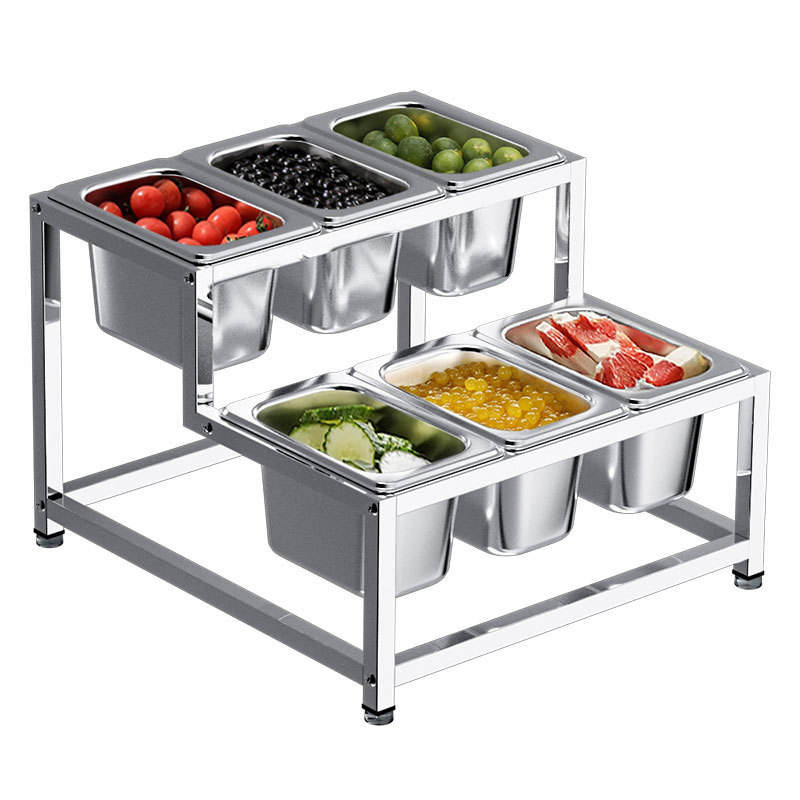 ชั้นวางของสแตนเลสแบบสองแถวทรงสูงต่ำ 6 ช่อง สำหรับร้านชานมและเครื่องปรุงรส รุ่น Butterfly Roasted Fragrance