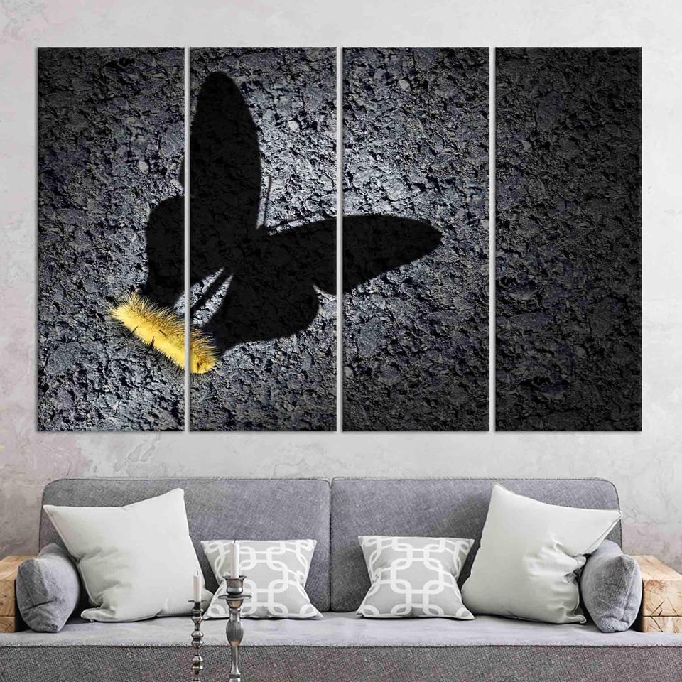 ภาพพิมพ์ผ้าใบลายผีเสื้อ: ภาพศิลปะติดผนังรูปหนอนผีเสื้อ ชุดผ้าใบ 4 ชิ้น