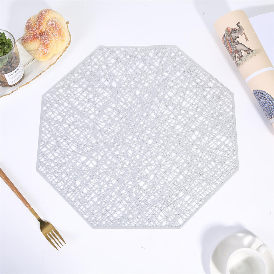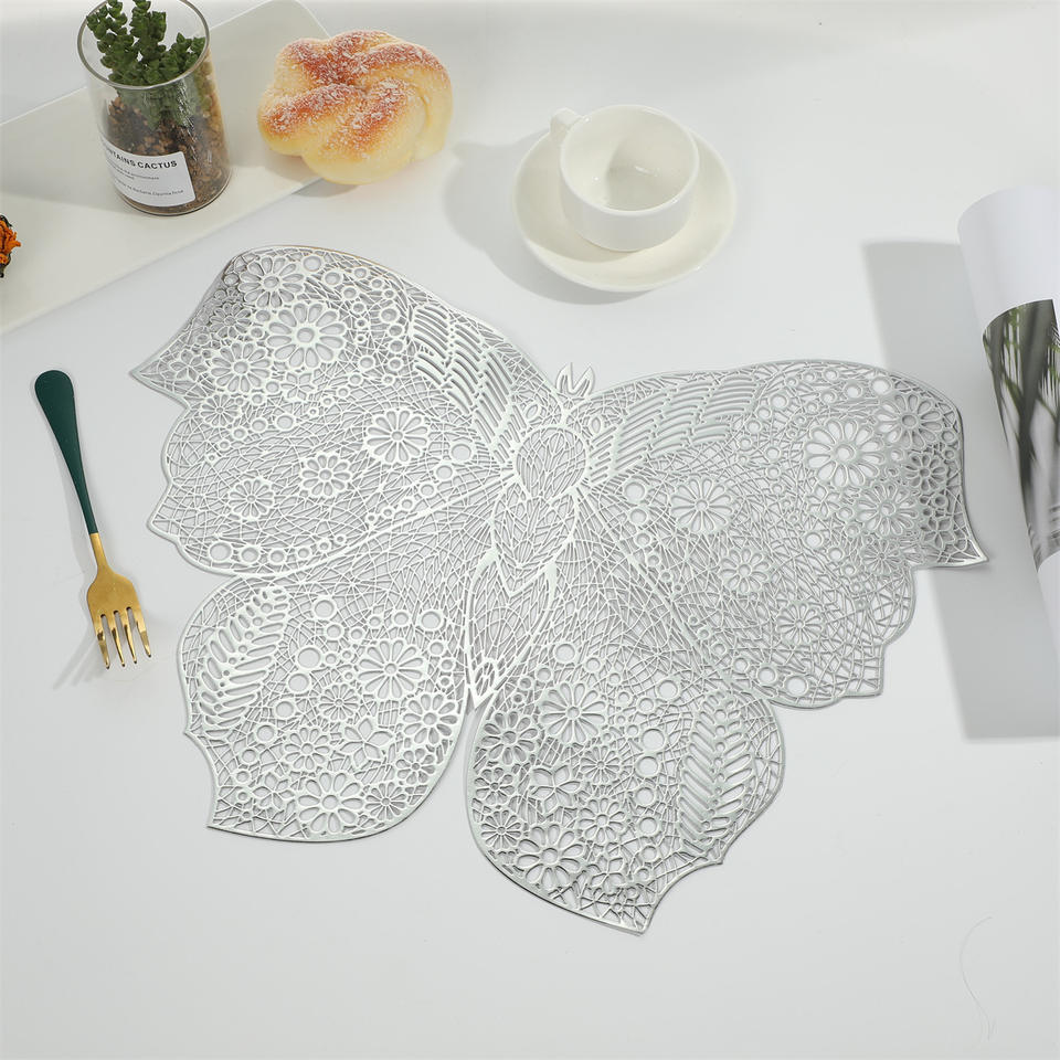 แผ่นรองชามอาหารแบบตะวันตกทำจากพีวีซีสีเงินลายผีเสื้อ
