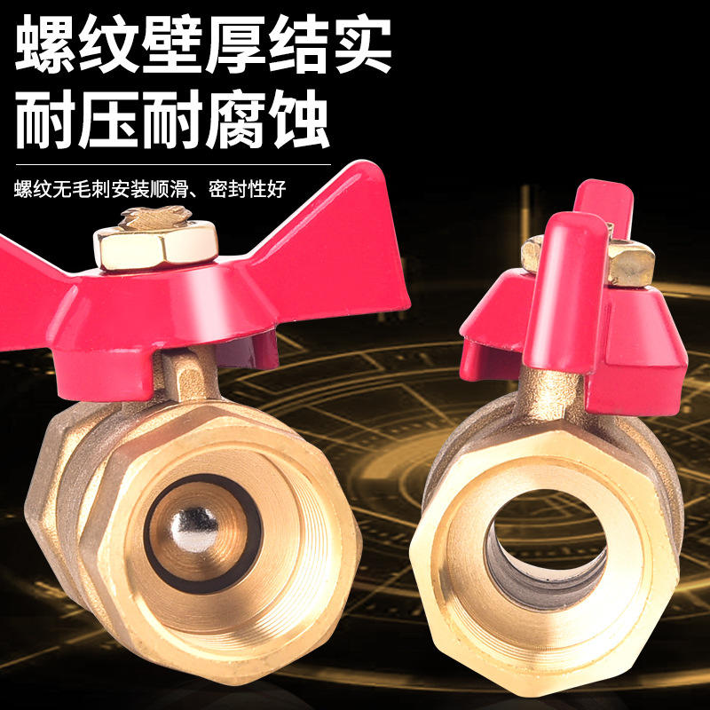 วาล์วบอลทองเหลืองหนา รูปทรงผีเสื้อ ด้ามจับสีแดง ขนาดเล็ก 2/3/4/6 จุด สำหรับน้ำประปา แก๊ส และท่อประปา