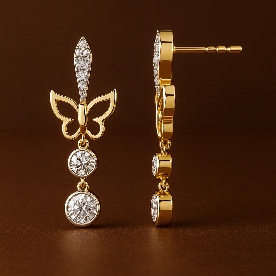 ต่างหูเพชรรูปผีเสื้อสีทอง14K แบบกดสำหรับของขวัญงานหมั้นหรืองานแต่งงานสำหรับผู้หญิง