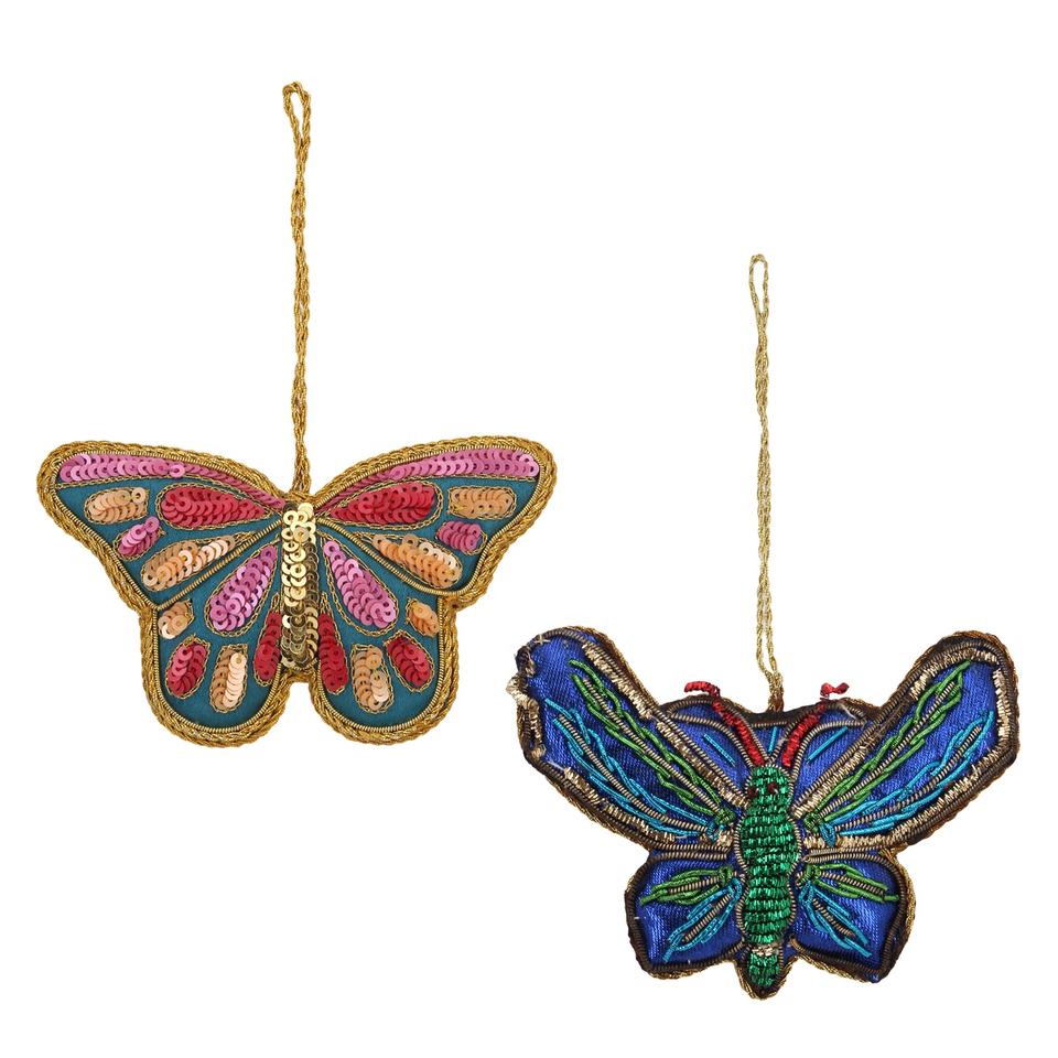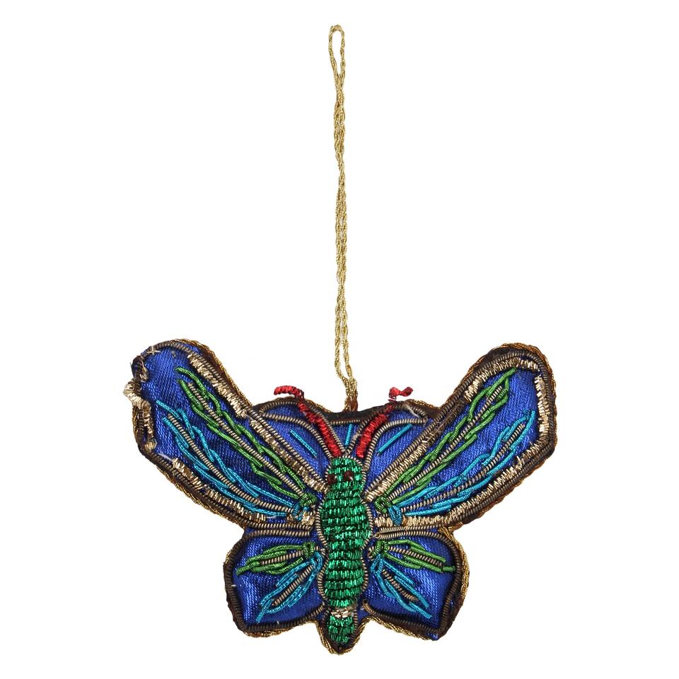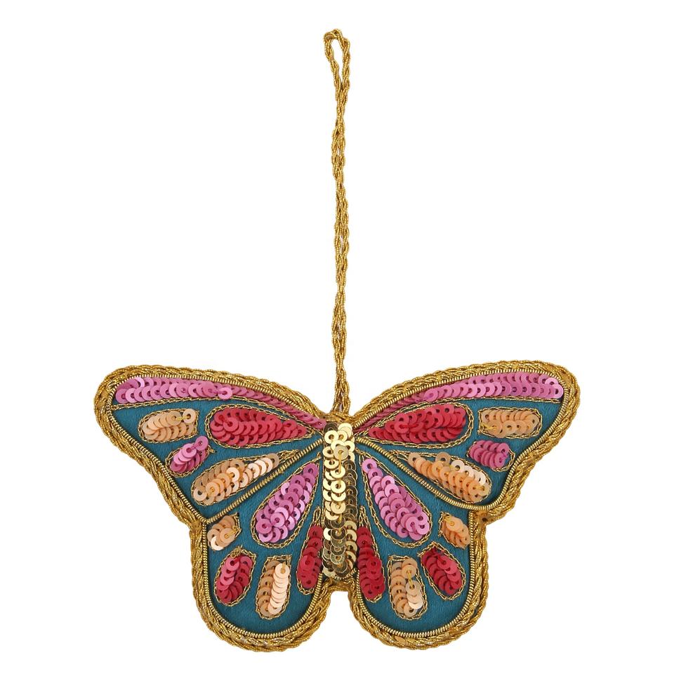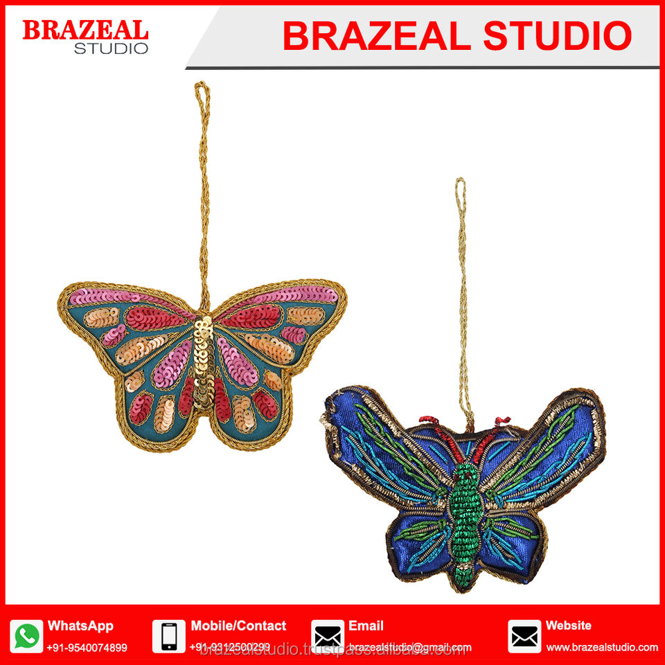 เครื่องประดับตกแต่งต้นคริสต์มาสรูปผีเสื้อ ผ้ากำมะหยี่ปักมือ สีตามสั่ง ขนาด 4-10 ซม.
