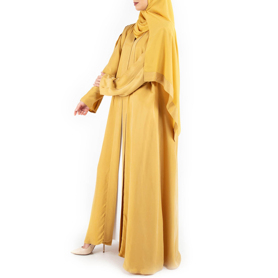 ชุดใส่ประจำวันสไตล์ผีเสื้อระบายอากาศสีพื้นยาวมุสลิมแบบดั้งเดิมของผู้หญิง