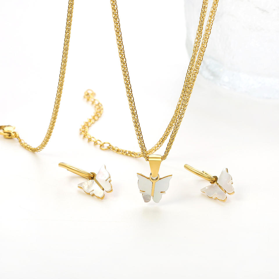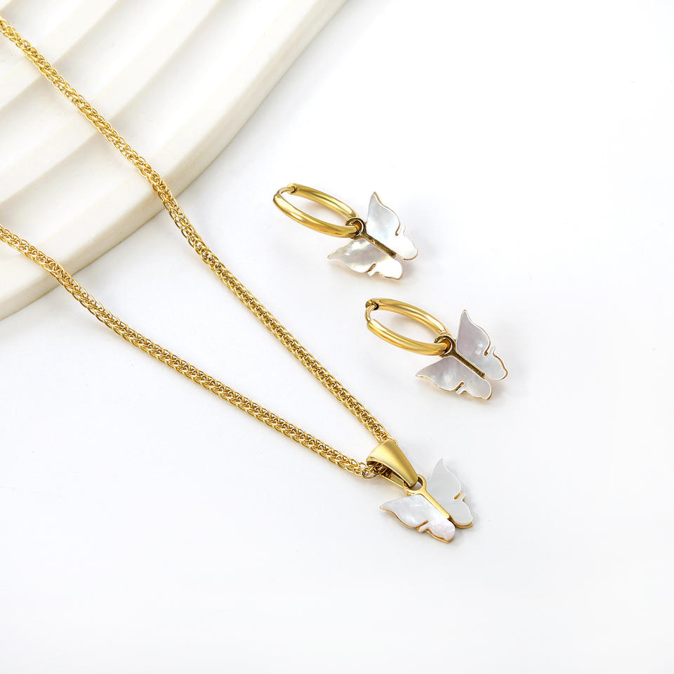 ชุดเครื่องประดับเปลือกหอยสีขาวรูปผีเสื้อ สร้อยคอและต่างหูสแตนเลสสำหรับผู้หญิง ของขวัญ