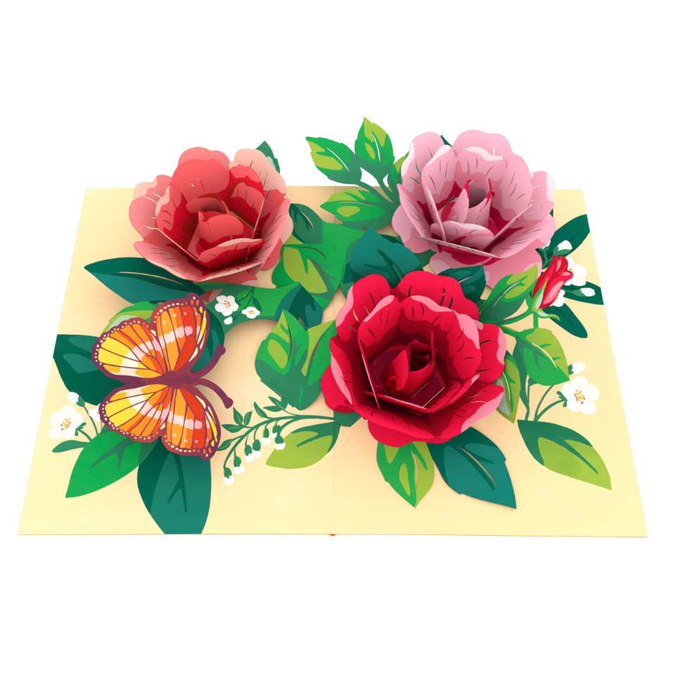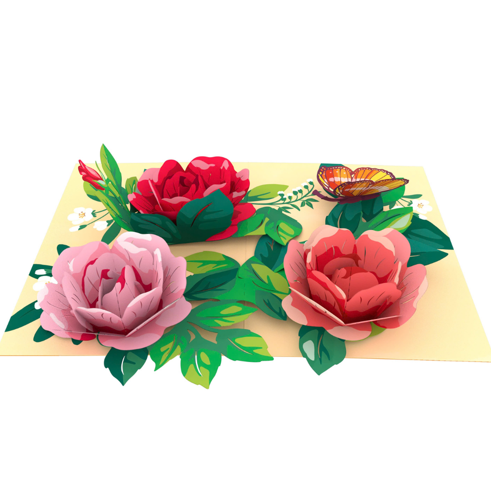 การ์ดป๊อปอัพ 3 มิติรูปผีเสื้อและดอกกุหลาบพร้อมซองจดหมาย การ์ดอวยพรดอกไม้ทำมือสุดประณีตสำหรับโอกาสพิเศษ