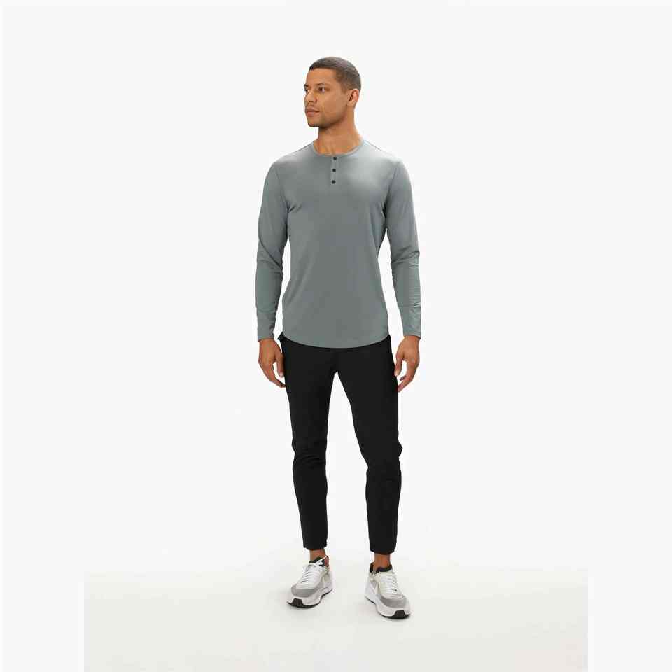 เสื้อเชิ้ตผ้าฝ้าย33% ผ้าโพลีเอสเตอร์62% นุ่มมีกระดุมเสื้อแขนยาวเสื้อแบบ Henley 5%
