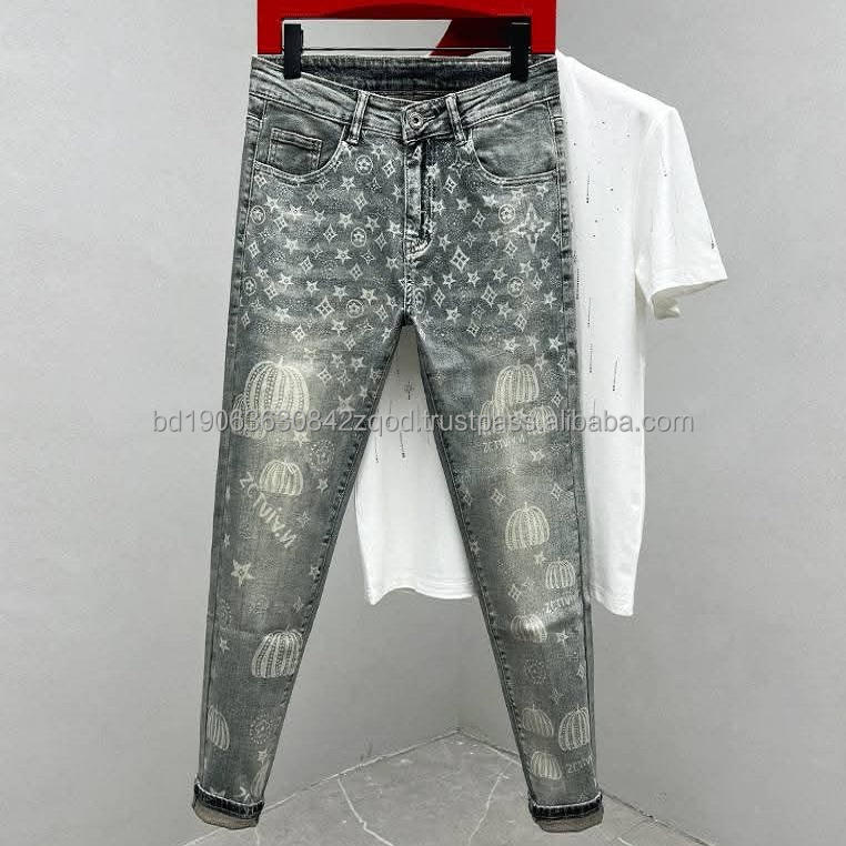 กางเกงยีนส์ผู้ชายทรงสลิมฟิต แต่งลายปะติดปะต่อ ลายเสือดาว ปักลายฮิปฮอป มีสินค้าพร้อมส่ง