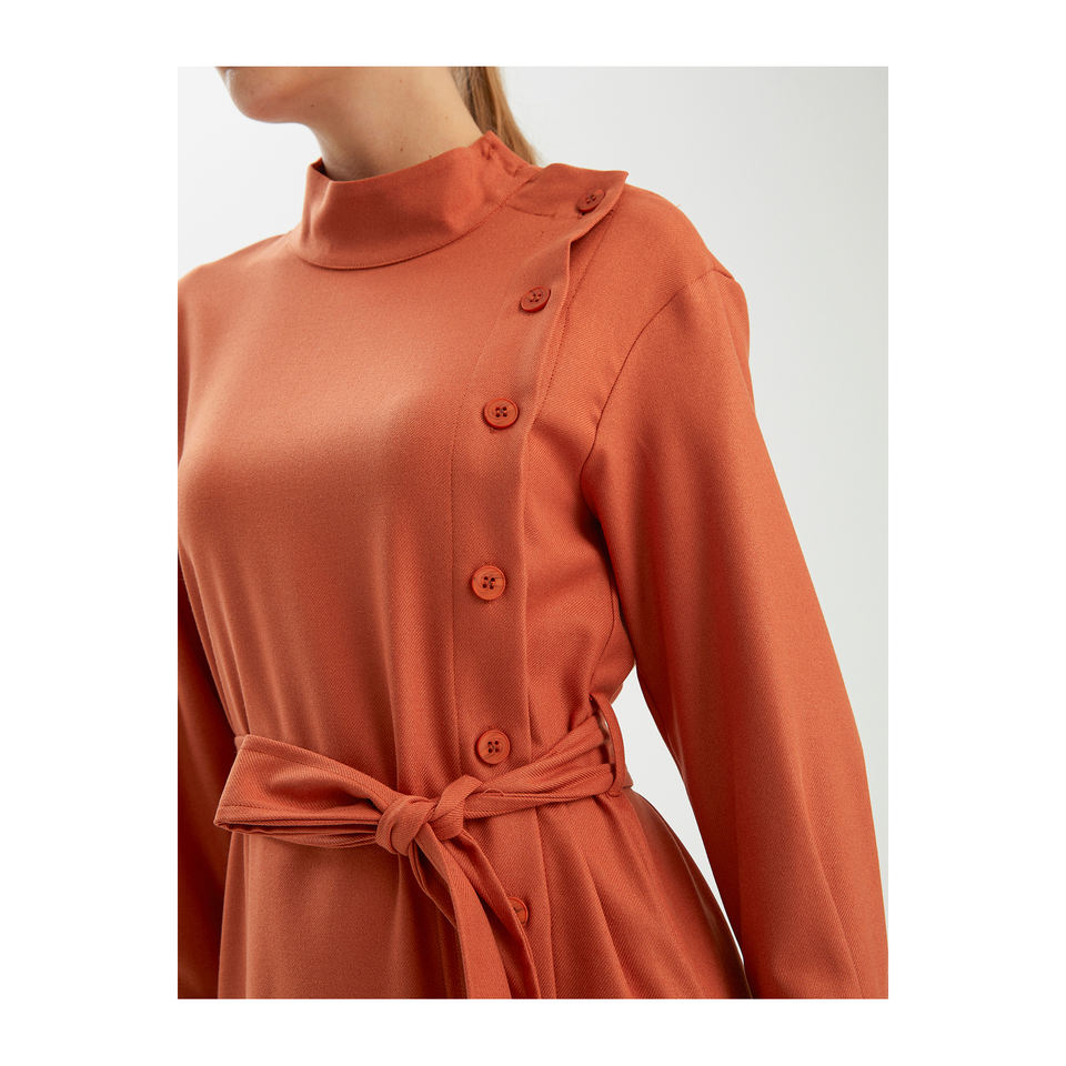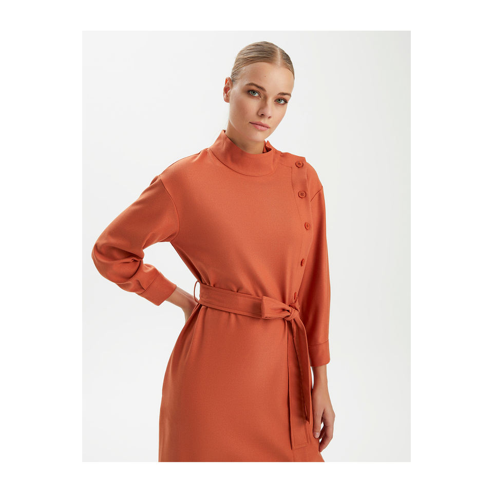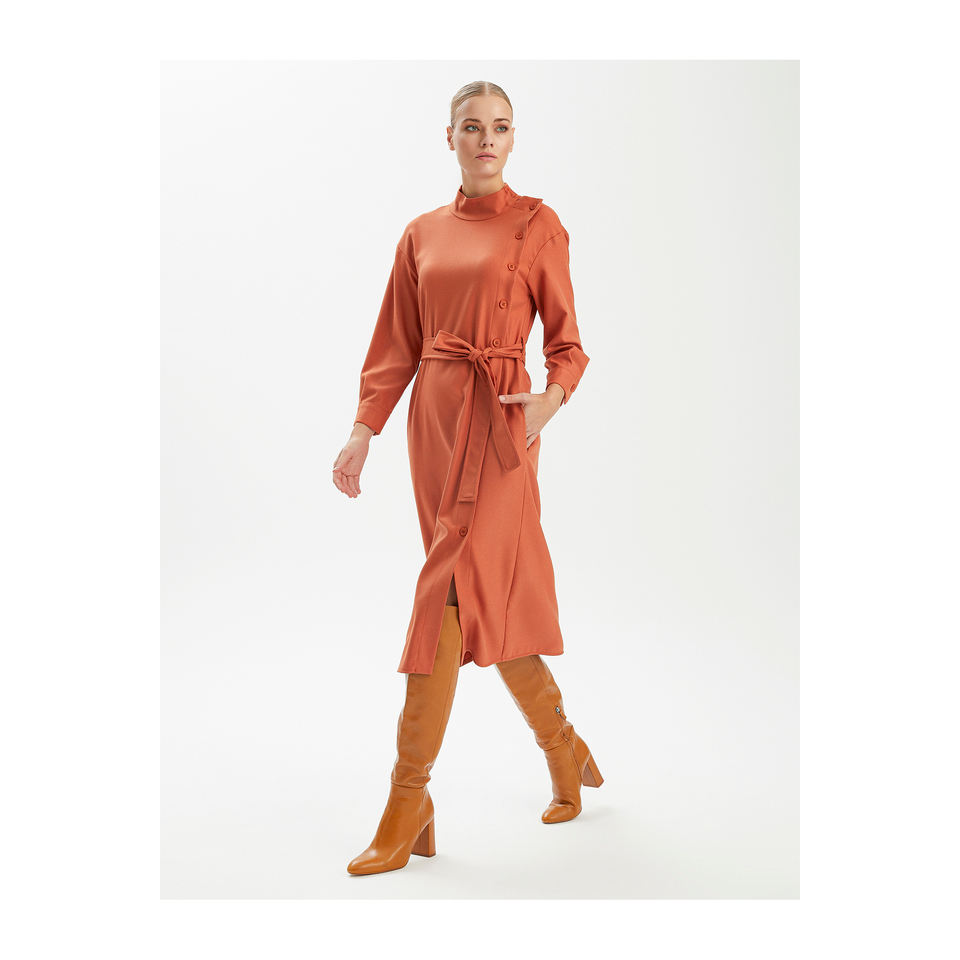 ชุดเดรสผ้าวิสโคสผสม แต่งกระดุมและเข็มขัด ดีไซน์หรูหรา คอลเลคชั่นชุดเดรส