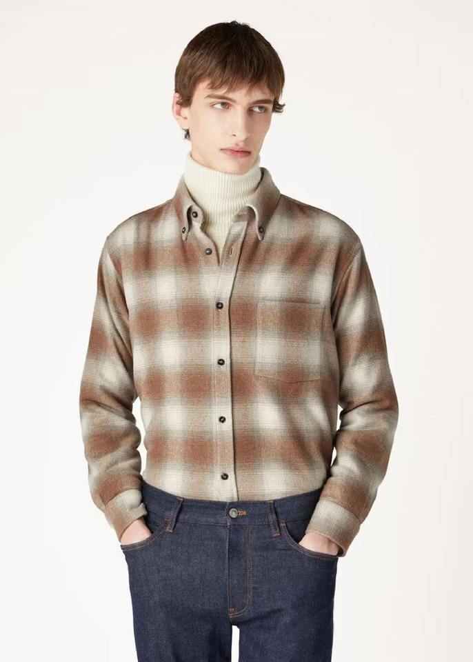 เสื้อแจ็คเก็ตเชิ้ตผ้าฝ้ายหนาน้ำหนักมาก ลายสก็อต สำหรับผู้ชาย ปกติดกระดุม