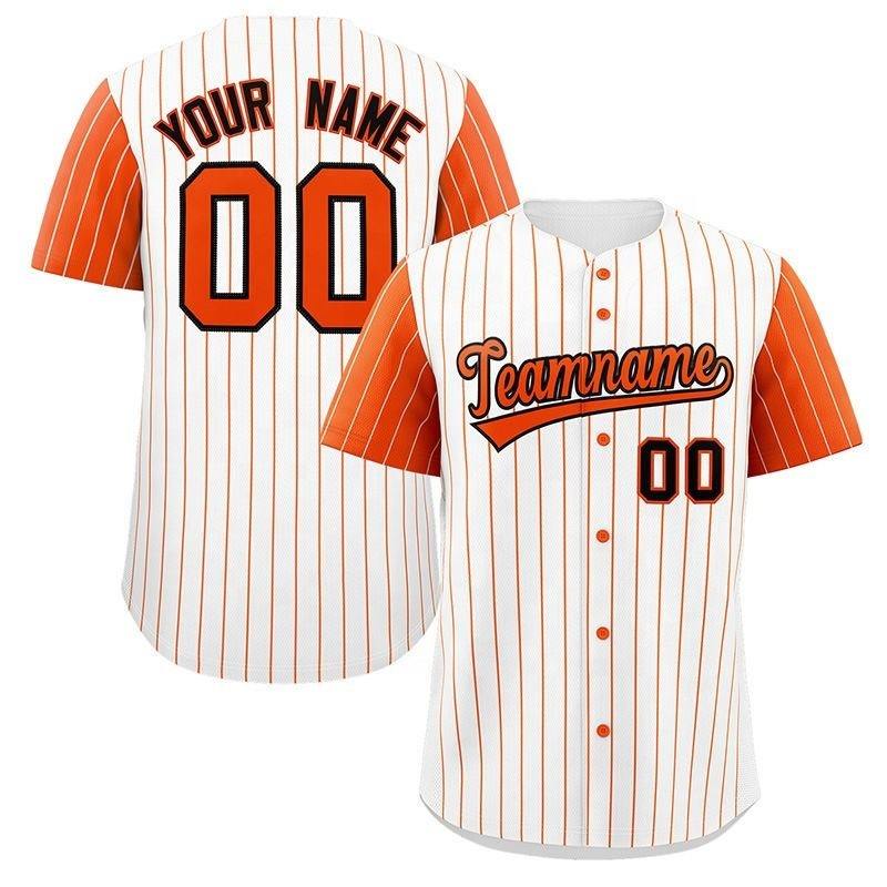 เสื้อเบสบอลคอวีติดกระดุม ปักชื่อและหมายเลขได้ตามต้องการ ระบายอากาศได้ดี ลายทางแนวตั้ง ชุดกีฬา โพลีเอสเตอร์ 100%