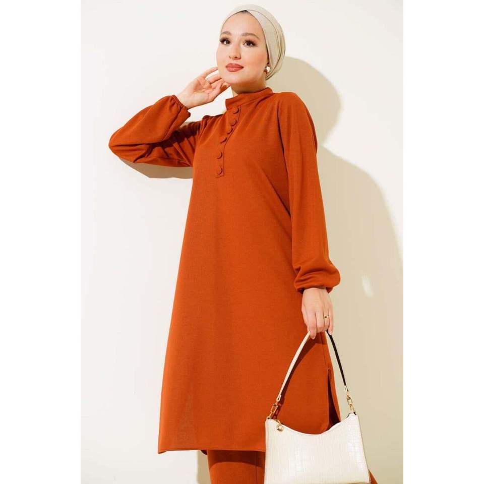 ชุด2ชิ้นเสื้อทูนิคประดับกระดุม