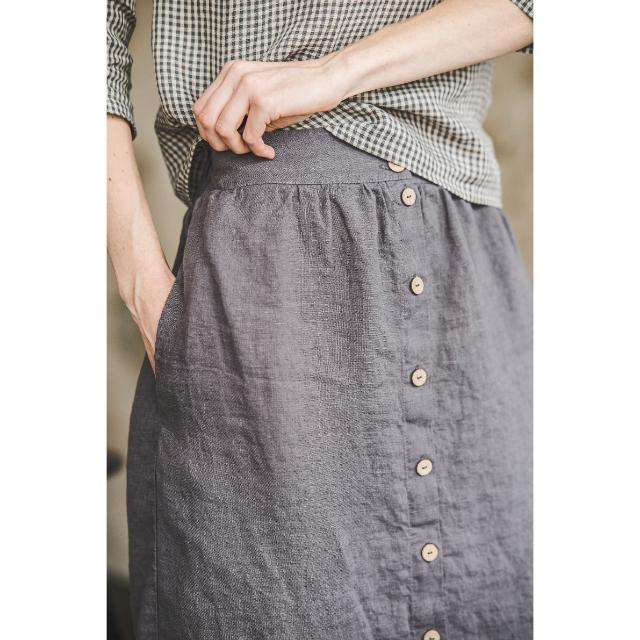 กระโปรงคลุมเข่าแบบติดกระดุม100% ผ้าลินินขนาดพิเศษกระโปรงยาวมีกระเป๋าติดกระดุม
