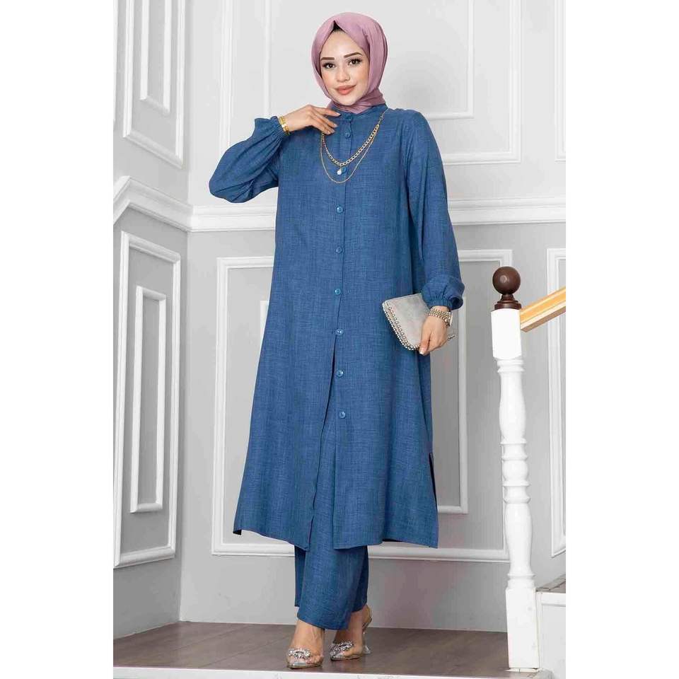 ชุดทูนิกกระดุม2ชิ้นสีคราม