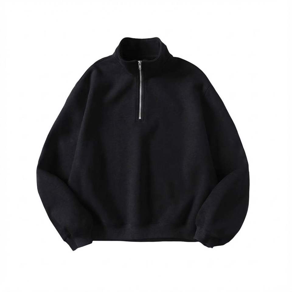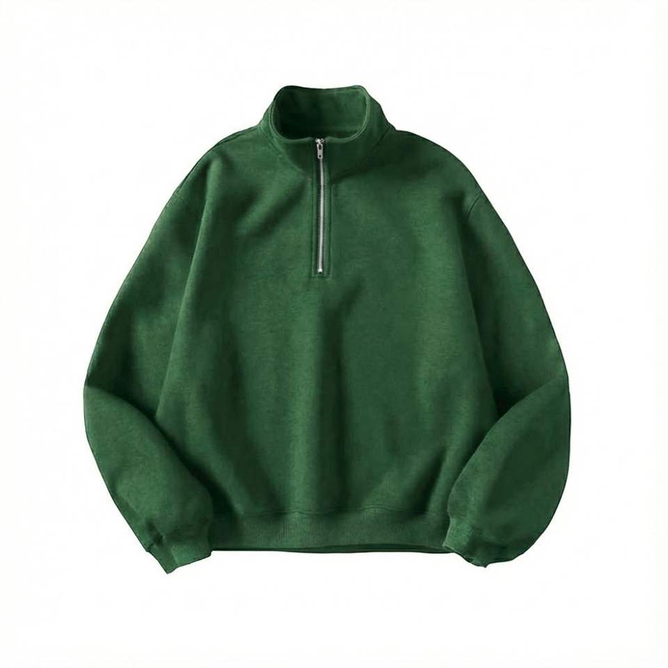 เสื้อสเวตเชิ้ตผ้าฝ้ายฟลีซหนานุ่ม 430gsm แบบซิปครึ่งตัว สไตล์วินเทจ ทรงโอเวอร์ไซส์ ไม่มีฮู้ด สำหรับผู้ชาย