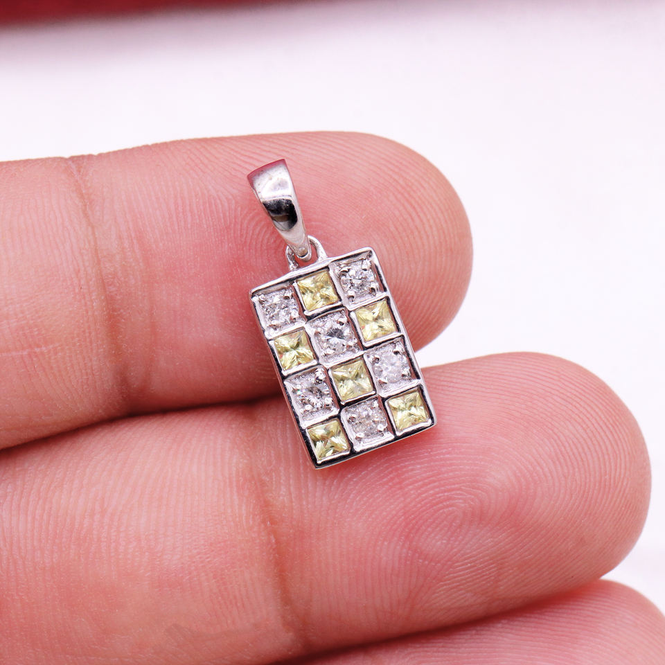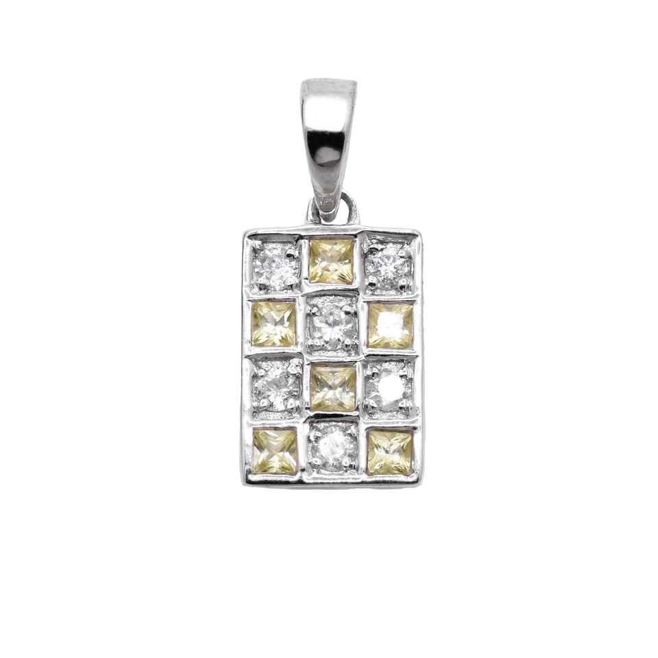 ชื่อรายการ:จี้พลอยแซฟไฟร์สีเหลืองธรรมชาติและรัศมีเพชรเงิน
