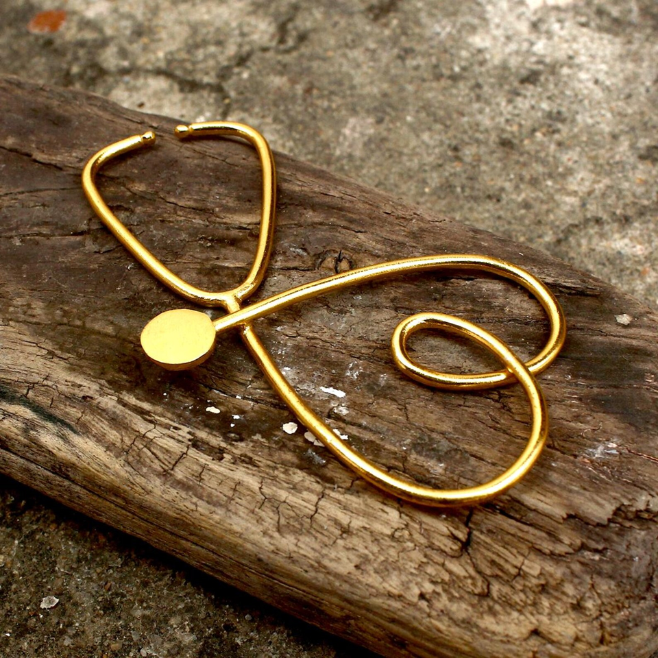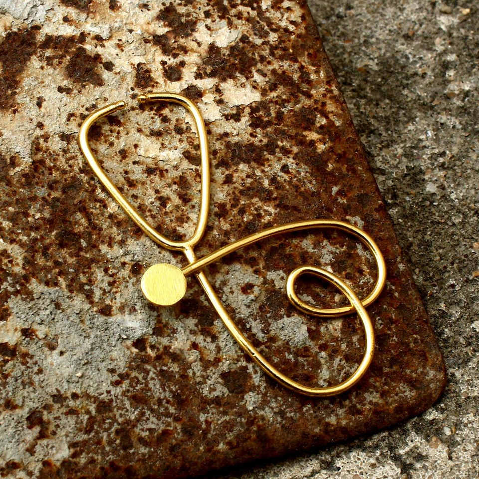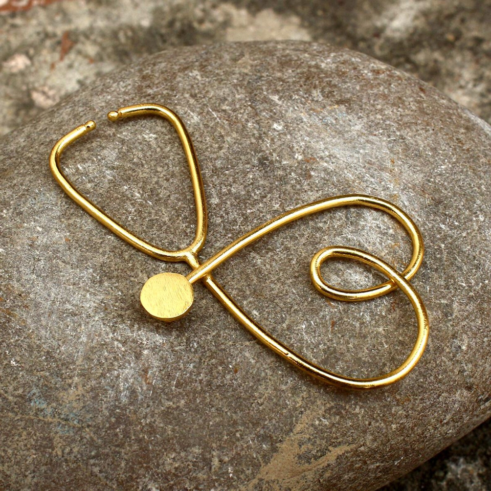 ซื้อจี้สร้อยคอรูปหัวใจสีทองแบบแอบสแตรกต์พร้อมเครื่องฟังของแพทย์เครื่องประดับสร้อยคอทำมือแบบเรียบง่ายที่ได้รับแรงบันดาลใจ