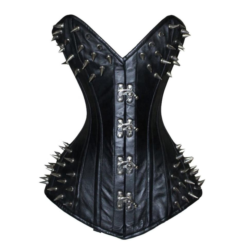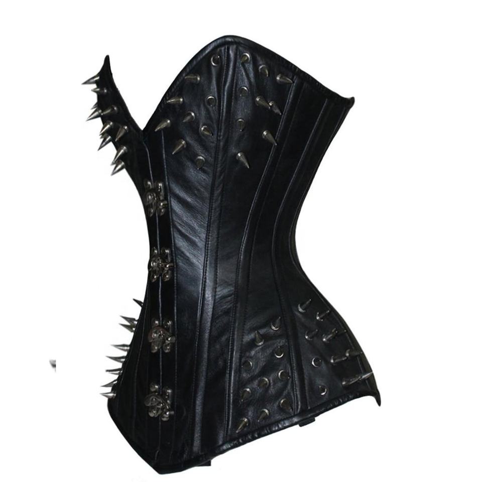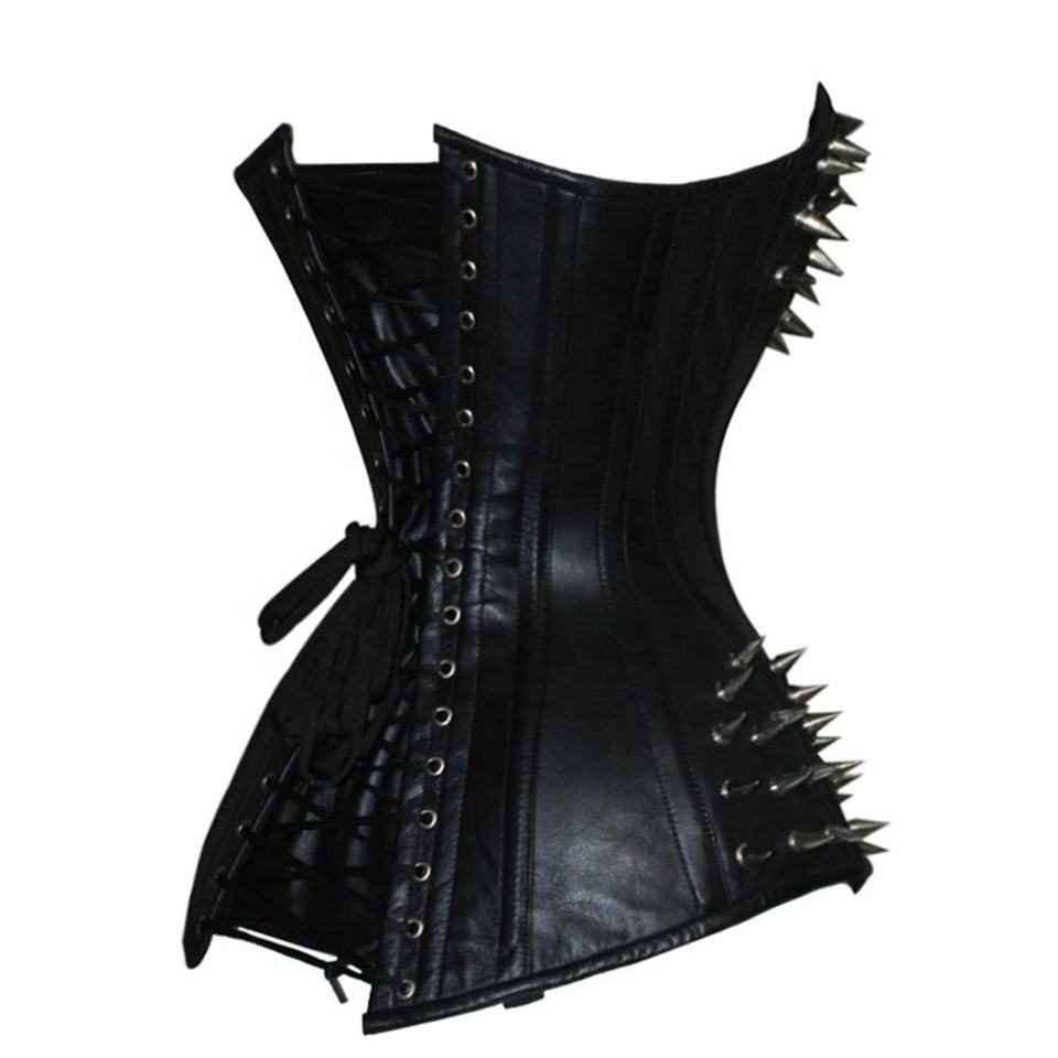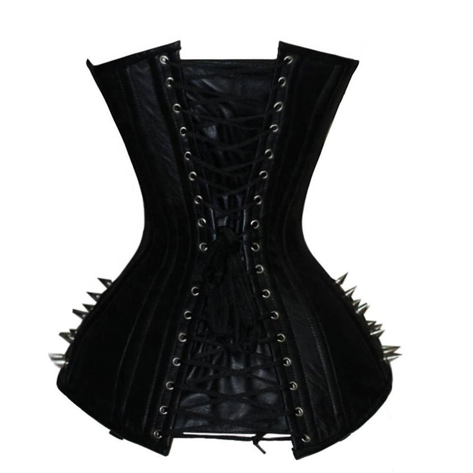 ซื้อคอร์เซ็ทโอเวอร์บัสต์แบบมีโครงเหล็ก ควบคุมรูปร่างได้ดี สีดำ หนัง แต่งลูกไม้ สไตล์สตีมพังก์ กอธิค